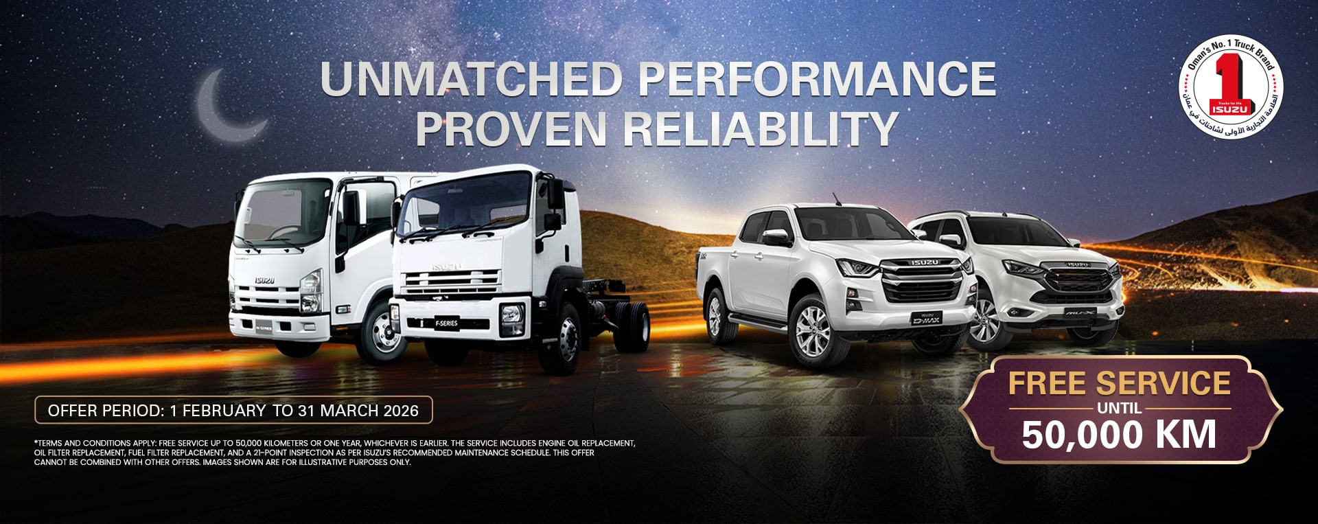 We at ISUZU have an extensive Research and Development program for our Oman vehicle. This ensures that ISUZU Trucks in the Middle East have all been built for optimal use in Middle East conditions. When buying an ISUZU, you’ll be getting the best product with the best value – and at the shortest lead-time.
